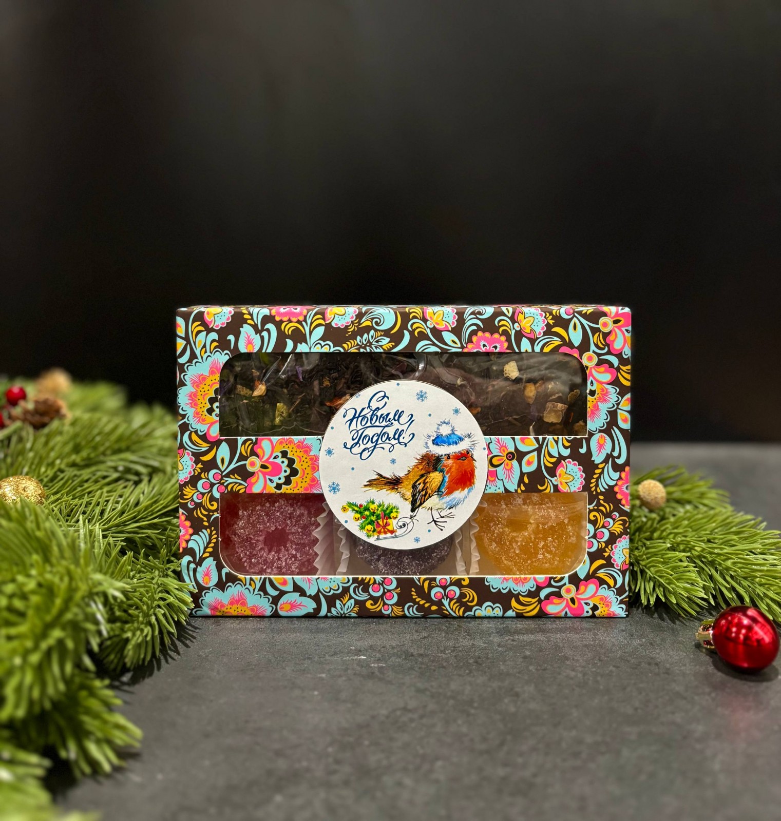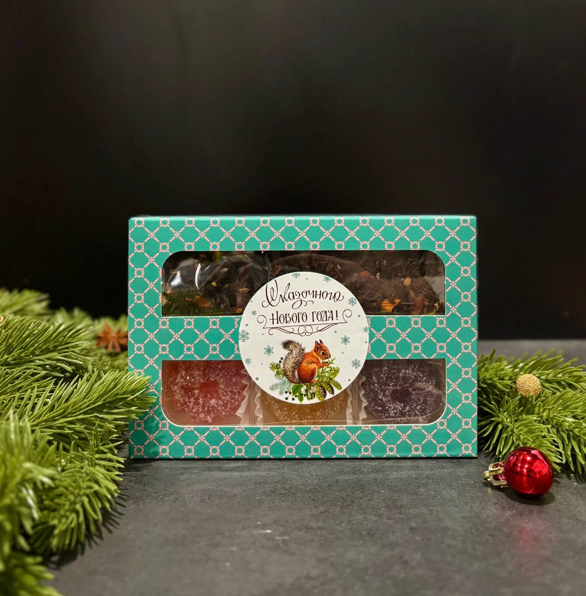 В составе чай черный листовой "Царский выбор" + мармелад ассорти