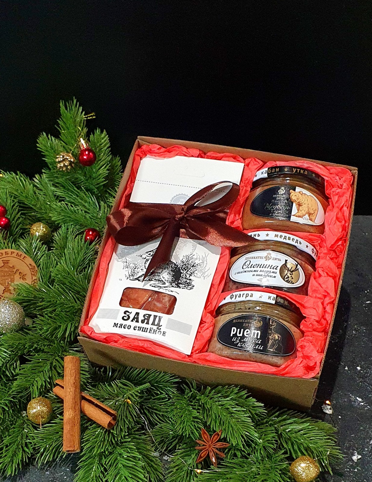 Подарочный набор в крафтовой коробке с окном + бант, размер коробки 20*20*8см.