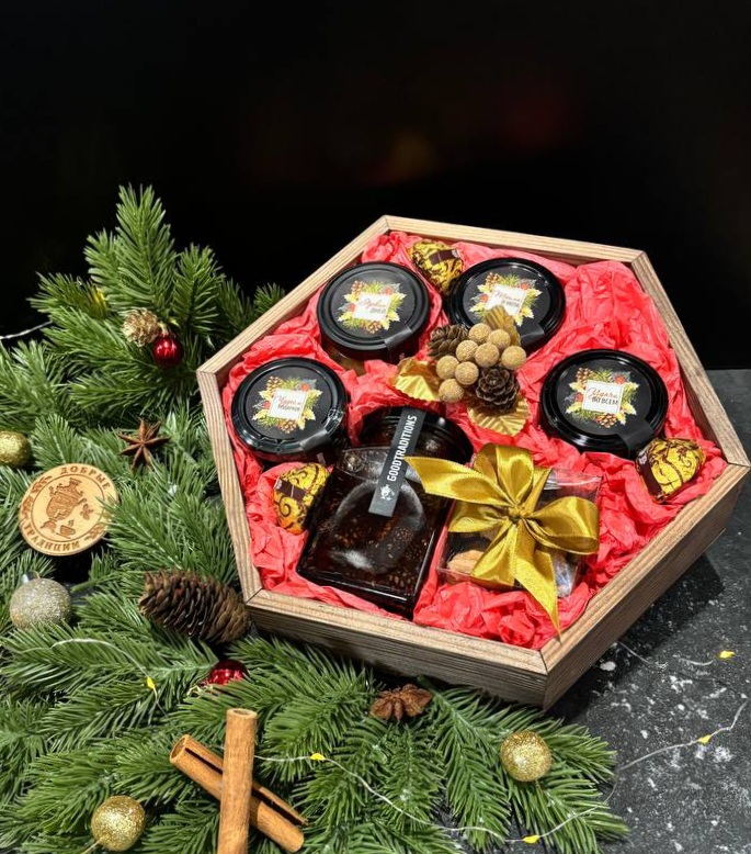 Подарочный набор в деревянной коробке шестигранник с прозрачной крышкой, размер 30*30*7см