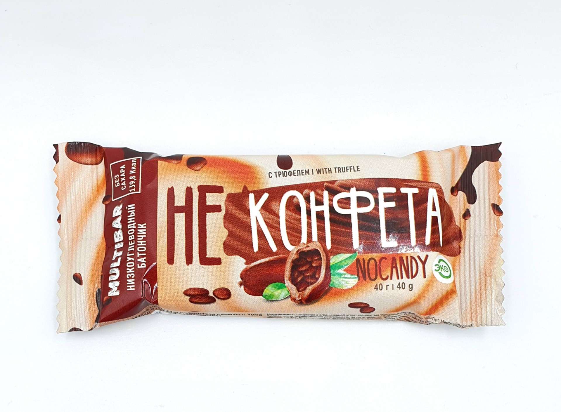 Состав: начинка трюфельная (сахарозаменитель аллюлоза натуральный, какао масло, какао порошок, молоко сухое обезжиренное, сыворотка сухая молочная, эмульгатор лецитин соевый, ароматизатор трюфель), высокобелковая молочно-шоколадная глазурь (сахарозаменитель натуральный аллюлоза, какао масло, концентрат молочного белка, концентрат сывороточного белка, какао порошок, эмульгатор лецитин соевый, ароматизаторы ванилин, шоколад).
