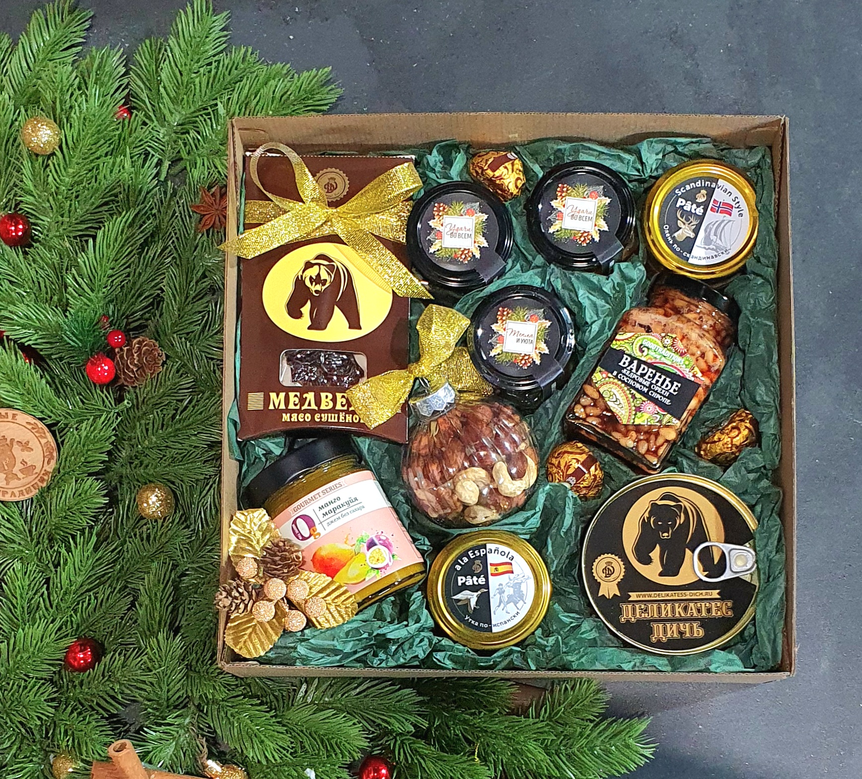 Подарочный набор в коробке крафт с прозрачной крышкой, украшенной атласной лентой, размер 30*30*8см