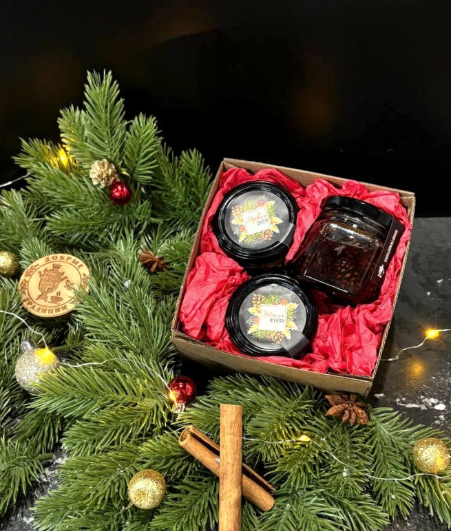 Подарочный набор в крафтовой коробке с окном + бант, размер коробки 13*13*7см.