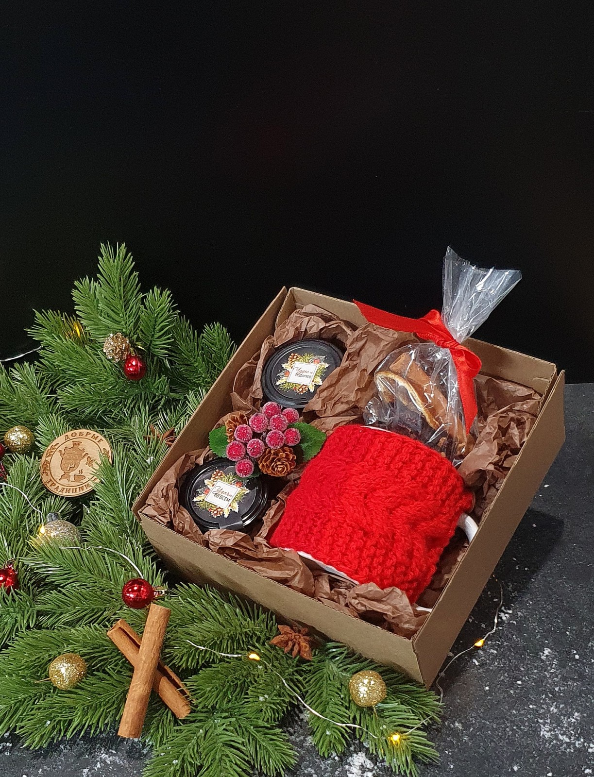 Подарочный набор в крафтовой коробке с окном + бант, размер коробки 20*20*8см.